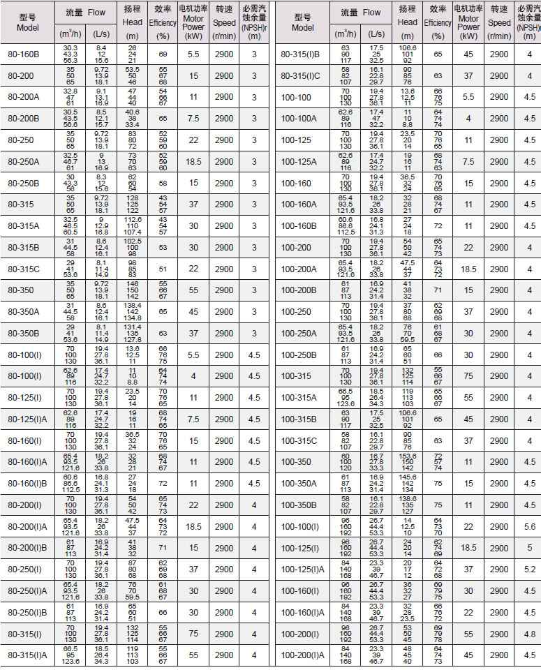 3、所输送介质中固体颗粒体积含量不超过单位体积的0.1%,粒度<0.2mm. 注:如使用介质为带有细小颗粒,请在订货时说明,以便采用耐磨式机械密封